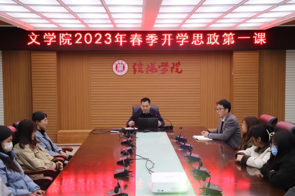 为使同学们更加坚定党的信仰,不负韶华,争当民族复兴大任的时代新人,3月18日下午,信阳学院校长助理张永志在人文楼208会议室为同学们讲授新学期思政第一课。文学院党总支书记李赟与一百余名同学参加学习了本次课程。