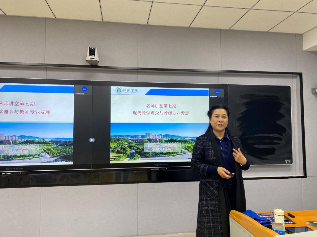 4月4日下午,信阳学院第七期主题为“现代教学理念与教师专业发展”的名师讲堂在人文楼南楼智慧教室113举行,活动邀请洛阳师范学院刘岸英教授担任主讲嘉宾,活动由教师教学发展中心副主任邓荣娟主持。