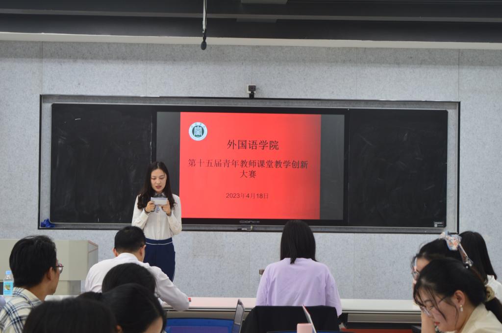 为推动课堂教学革命,加强青年教师教学队伍建设,促进青年教师教学能力提升,全面提高学校外语教育教学质量。根据学院教学工作安排,4月18日下午,外国语学院在实训中心417举办了第十五届青年教师课堂教学创新大赛。外国语学院院长罗德喜教授、教学副院长李静副教授、特聘教授韩保宪、翻译教研室主任梁法丽、英语语言文学教研室王娟副教授担任此次大赛评委。
