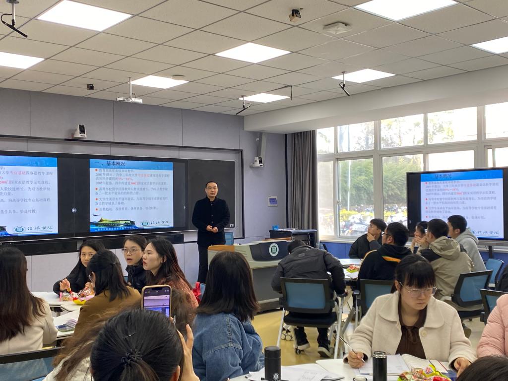 在讨论环节,朱教授同与会教师围绕“双语教学实践与交流”进行了深入的交流,老师们纷纷表示受益匪浅,对于双语教学项目申报、双语教课程建设及双语课程教学有了新的认识。