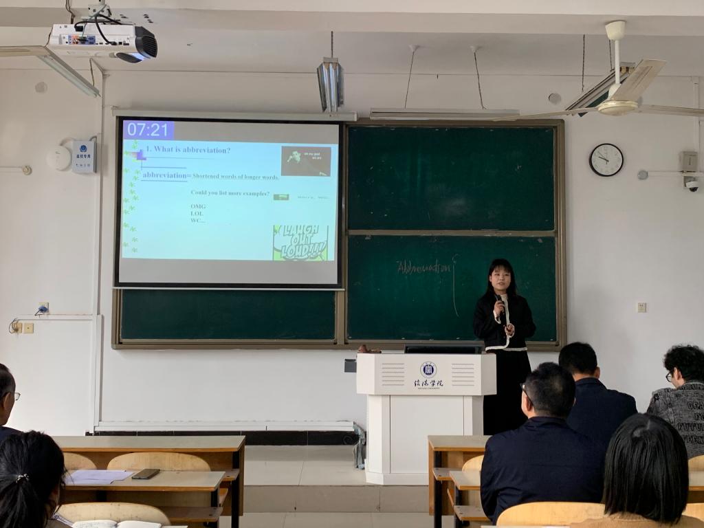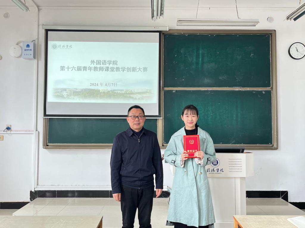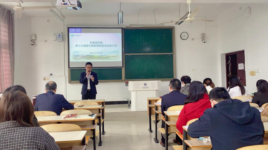 为推动课堂教学革命,加强青年教师教学队伍建设,促进青年教师教学能力提升,全面提高学校外语教育教学质量。4月7日上午,外国语学院在外语楼202成功举行第十六届青年教师课堂教学创新大赛。院长罗德喜、教学副院长李静、特聘教授韩保宪、何杰英等担任本次比赛评委,比赛由教学干事李达主持。外国语学院领导班子成员及全体教师全程观摩了此次大赛。