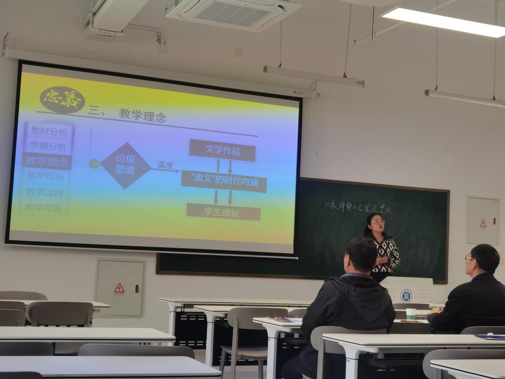 比赛中,王永莉老师立足《<水浒传>之宋江忠义》文本,详细梳理了宋江思想行为变化发展的三个轨迹,接着提出问题:“宋江等人秉持“忠义”,何以落得悲剧结局?”引导学生进行合作探究。最后从教学到教育,联系实际,阐释处于今天新的历史条件下我们又该如何继承和弘扬忠义这一宝贵的精神财富。其他参赛选手或慷慨激昂,或引人入胜,为我们生动展现了授课的多种形势与技巧。