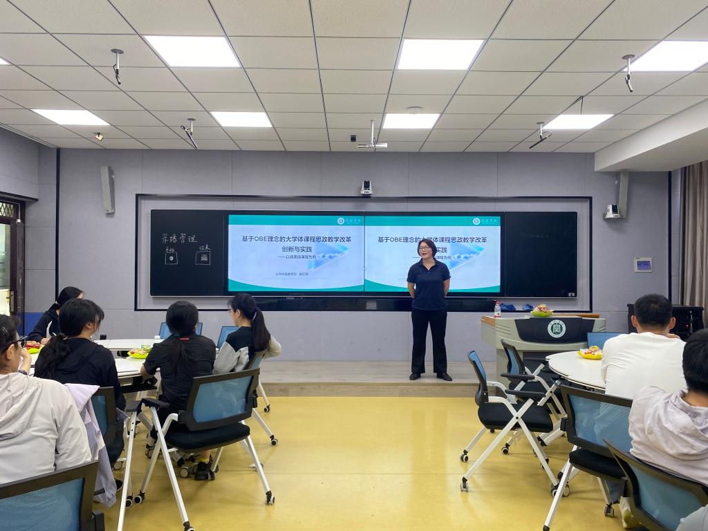 5月7日下午,由教师教学发展中心主办、公共体育教学部承办的主题为“基于OBE理念的大学体课程思政教学改革创新与实践--以健美操课程为例”的第三十三期教学沙龙在人文楼南楼智慧教室113举办。沙龙由公共体育教学部副教授剧红梅主讲,与来自公共体育教学部的全体青年教师围绕这一主题展开了研究与探讨。