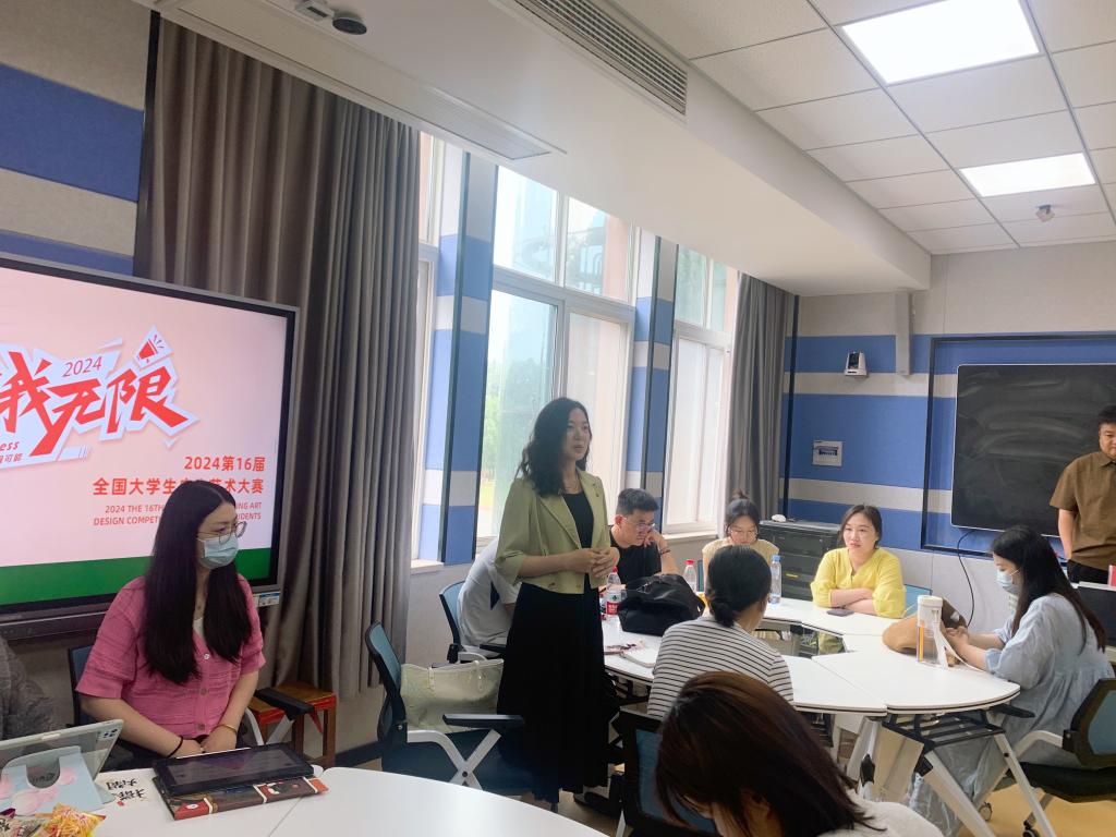 活动中多位教师发言,视觉传达设计专业教研室主任何伟重点分析了专业在竞赛中师生团队活动开展情况和竞赛经验分享。环境设计教研室主任张骁结合自身专业特点,从服务地方角度出发,分析了本专业的设计赋能和应用型人才培养的经验。青年教师娄濛、魏迁、解开根据自身实践案例和组织竞赛活动进行发言,沙龙活动过程讨论热烈。最后,三位设计专业骨干教师徐文君、郑满意、姜笑凡进行了设计专业赛事解读,鼓励老师们积极指导学生参赛,通过参赛学生的表现情况和比赛结果,反思自身教学的方式方法是否存在问题,从而提升教学的实用性和针对性,与学生形成良性互动,达到“以赛促教”的效果,实现教学相长。
