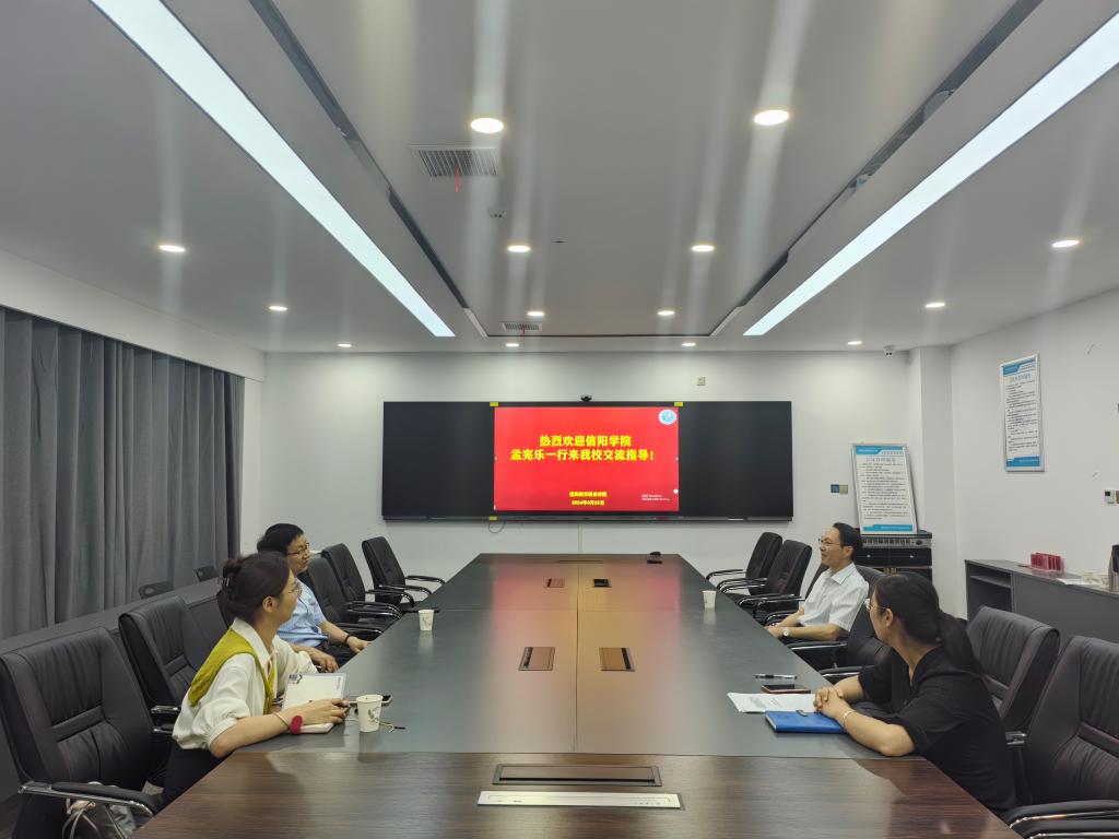 6月25日,教师教学发展中心主任孟宪乐一行到信阳航空职业学院考察交流。常务副校长李义凡热情接待了孟宪乐一行,副校长兼教师发展中心主任张文信、教务处副处长兼教师发展中心副主任苏美娜等相关负责人陪同交流学习。