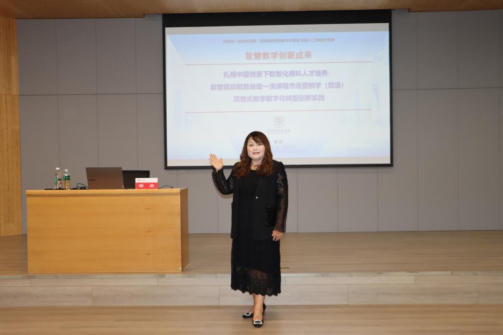 谢启基于AI赋能课堂教学改革的底层教学逻辑内容展开分享,清晰阐明了以企业需求为导向、学校发展定位为出发点的教学反向设计的设计逻辑等,并详细介绍了在自己主持的河南省线上线下混合式一流课程、河南省研究性教学示范课、人工智能示范课市场营销学(双语)中如何进行AI赋能教学的实践案例,如制作知识图谱、真人数字人教学视频和课程智能体,构建人机协同多维多元评价体系。谢启将前沿教育理论与丰富实践案例有机融合,从教育数字化转型内涵切入,对智慧课程的核心要素和设计流程框架展开深度剖析;详细阐释了教学内容的数字化重构策略,深入介绍AI在教学创新中的应用,以及AI助力教学设计创新等内容,全方位、系统性地呈现了智慧课程的设计思路与实施路径。