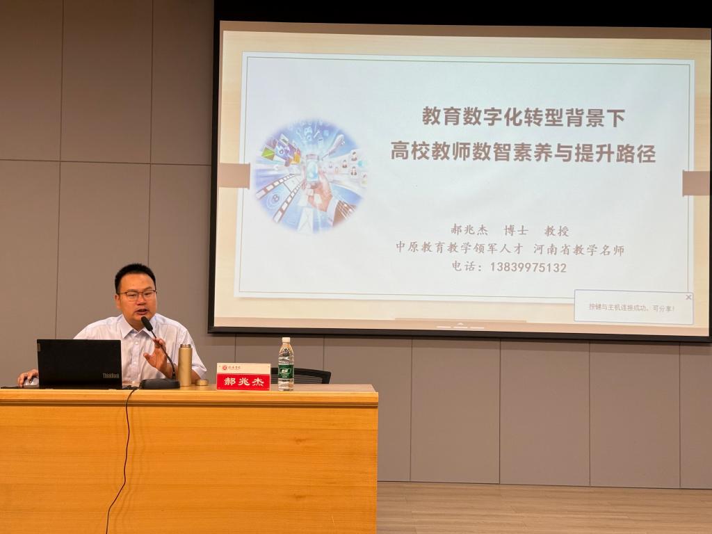 学校于9月14日上午在浉河校区图书馆101报告厅举行主题为“高校教师数智素养与提升路径”的第十五期名师讲堂。活动邀请中国教育技术协会信息技术专委会青年委员、河南省教育学会教育技术专业委员会副理事长、中原教育教学领军人才、河南省教学名师、河南大学教育学部副部长、教师教育学院院长郝兆杰教授担任主讲嘉宾。教师教学发展中心主任孟宪乐及教师代表聆听了讲座。活动由孟宪乐主持。