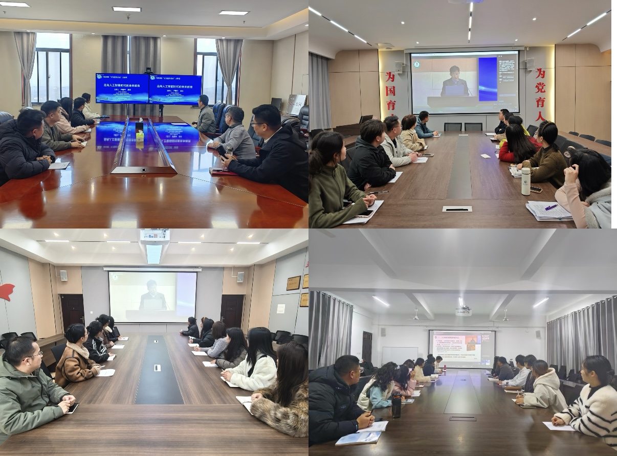 为扎实推进《河南省教育厅办公室关于开展本科高校教师人工智能应用全员培训的通知》《信阳学院教师人工智能素养与能力提升培训方案》落地生根,12 月 2 日下午,学校全体管理岗人员和辅导员参加线上“当代中国百名教育名家”卢晓中教授开展的《走向人工智能时代的未来教育》的专题讲座。
