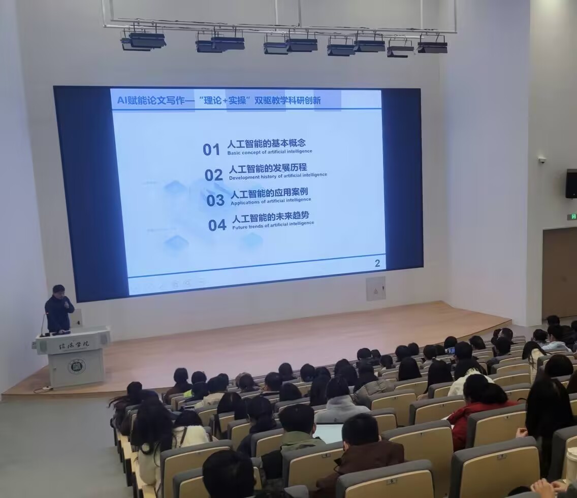 刘海龙结合“现代教育技术及应用”课程的教学改革实践,针对传统教学中存在内容与需求脱节、学生实践能力薄弱等痛点问题,带领课程组构建了“BOPPPS + 翻转课堂”混合式教学模式,随后融入知识图谱与AIGC技术,通过梳理296个知识点、搭建可视化图谱、启用AI助教及AI学情分析等手段,精准研判学习数据,以期实现精准教学与个性化学习。木强以“AI赋能论文写作”为主题,重点介绍了人工智能的基本概念、发展历程、应用案例及未来趋势。结合实例详细讲解了AI辅助论文选题、AI辅助内容撰写、AI辅助数据分析、AI辅助论文润色等实操内容。